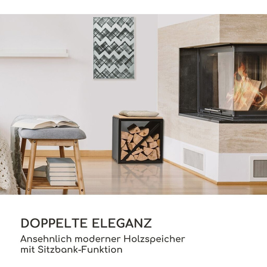 Blumfeldt - Holzspeicher - GDI11 - Kaminzubehör - schwarz, Stahl, Holz, 57x56x36 cm