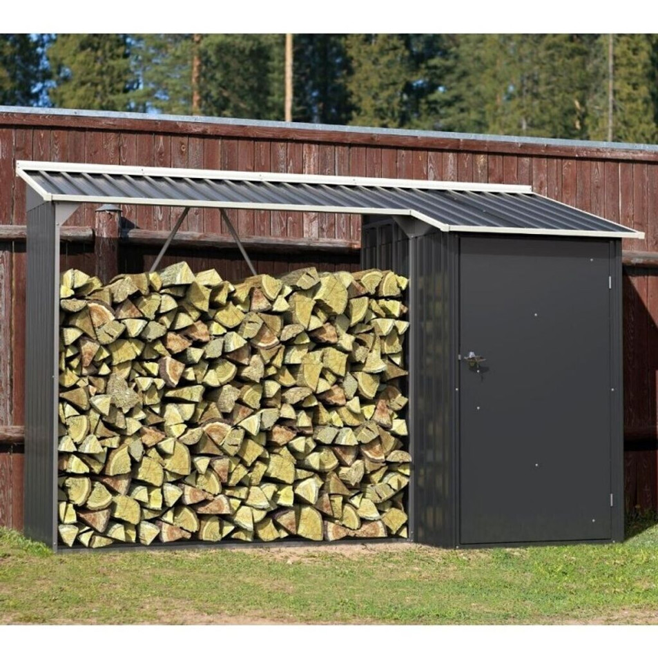 Duramax - Kaminholzregal mit Abstellraum - Brennholzregal - Stahl, wetterfest, anthrazit