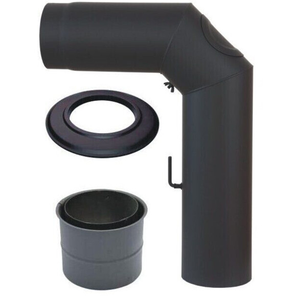 Mit einem Ofenrohrwinkel von 90° und einem Durchmesser von 130 mm lässt sich das Rohrset flexibel an Ihre individuellen Bedürfnisse anpassen. Das Set enthält neben den zwei Kniebögen eine Rosette und ein Doppelwandfutter. Ein besonderes Merkmal ist die integrierte Reinigungsöffnung, die die Wartung erleichtert, sowie die Drosselklappe, die für eine optimale Luftregelung sorgt.