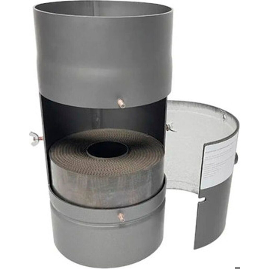 Der FireFix Ofenrohreinsatz mit Feinstaubfilter ist die ideale Lösung für effektive Abgasreinigung in Ihrem Kamin. Mit einem Durchmesser von 150 mm und einer Länge von 300 mm sorgt dieser hochwertige Ofenrohr-Erweiterung dafür, dass Verunreinigungen optimal gefiltert werden. Gefertigt aus robustem Stahlblech und in mattem, pulverbeschichtetem dunkelgrau erhältlich, fügt sich dieses Produkt harmonisch in jedes Wohnambiente ein.
