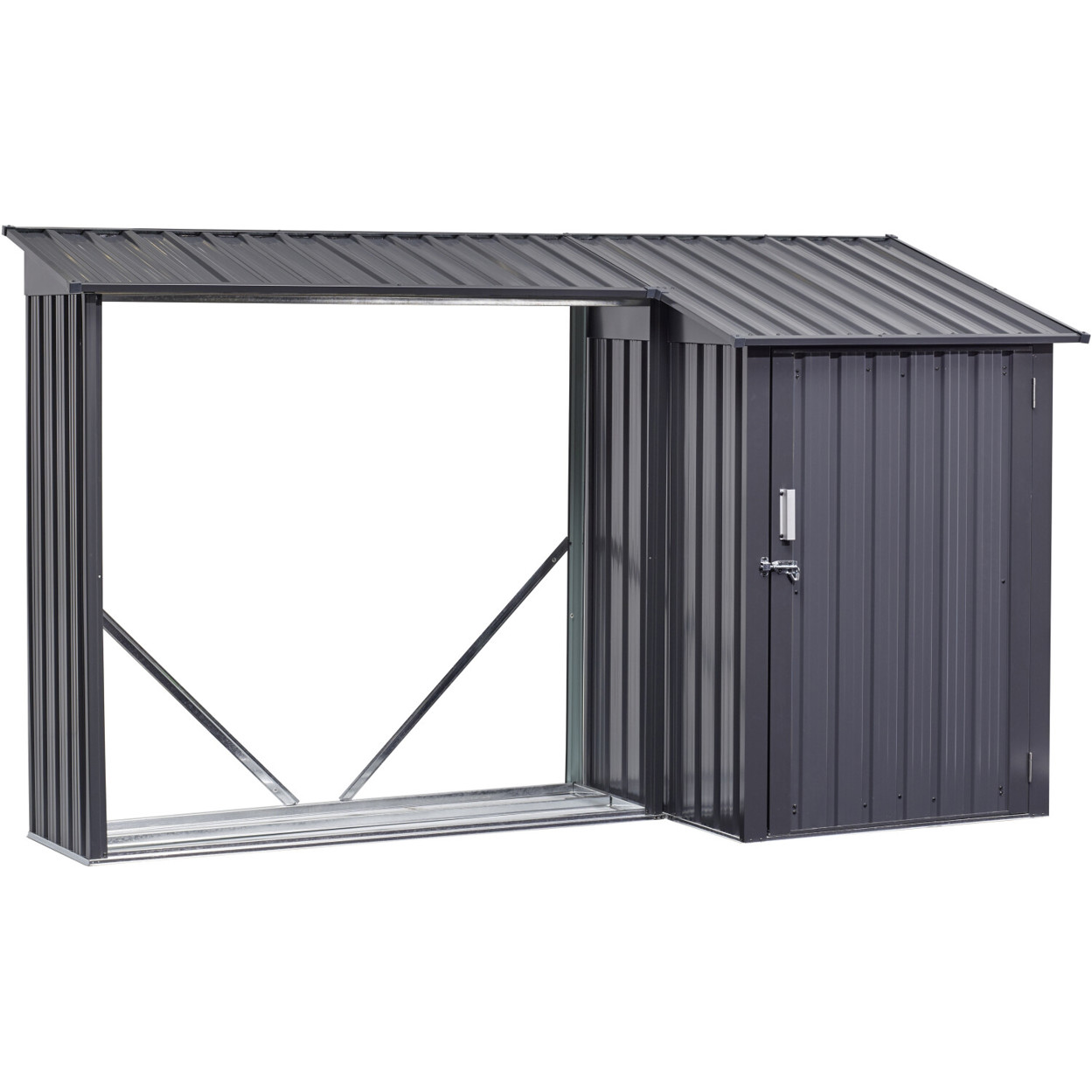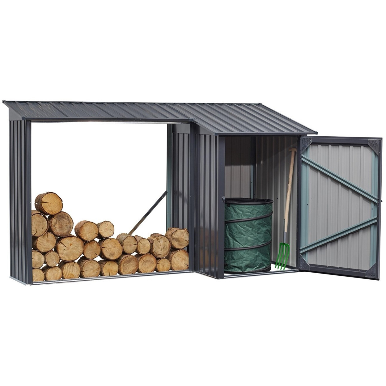 Dank der ansprechenden grauen Farbe fügt sich der Holzunterstand harmonisch in jeden Garten ein und ist eine stilvolle Ergänzung Ihrer Außenbereiche. Genießen Sie Ordnung und Übersichtlichkeit, indem Sie Ihre Heizmaterialien und Werkzeuge bestens geschützt aufbewahren.