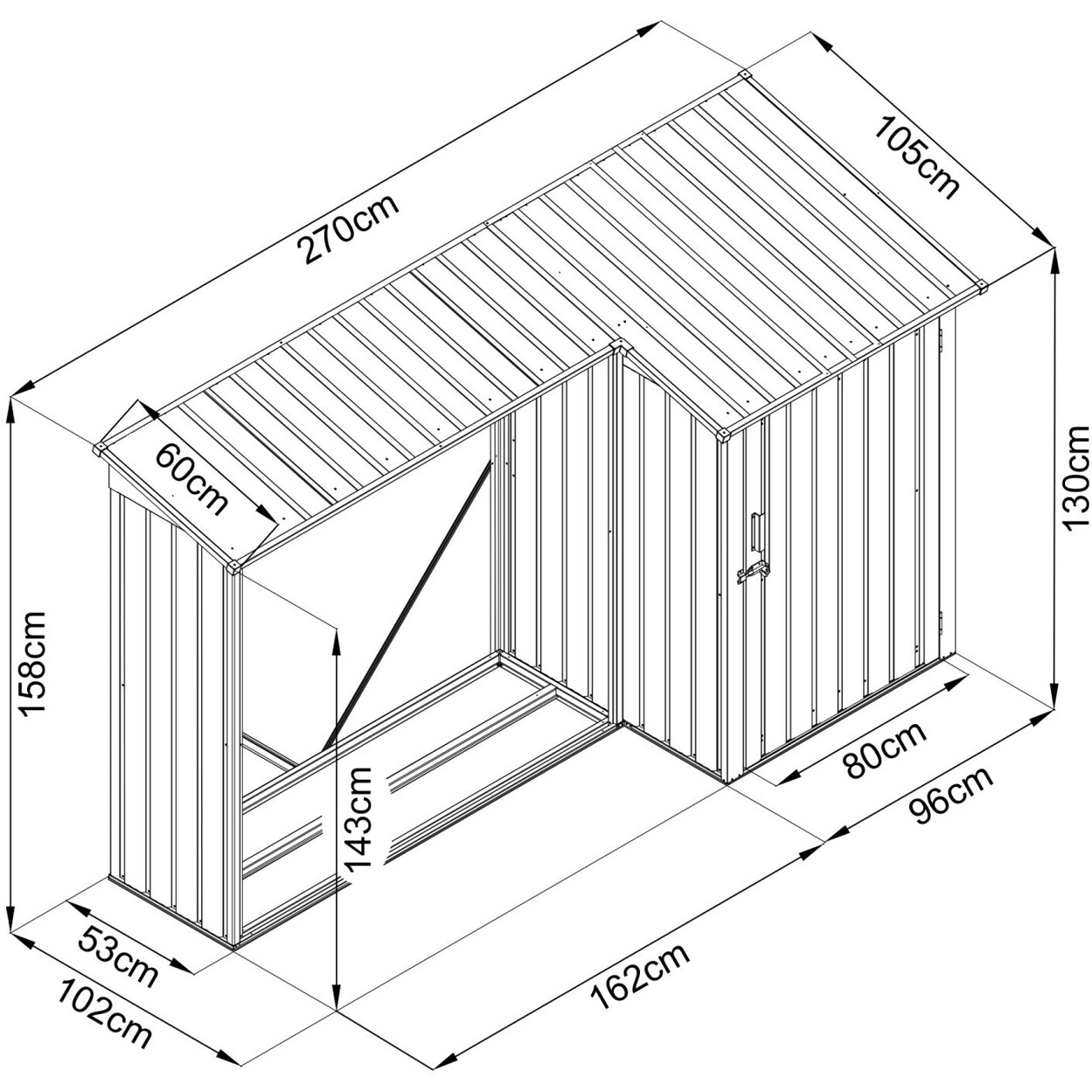 Der Floraworld Kombi Holzunterstand und Geräteraum ist eine praktische Lösung für Ihren Außenbereich. Mit seinen großzügigen Abmessungen von 270 cm in der Breite, 105 cm in der Tiefe und 158 cm in der Höhe bietet er ausreichend Platz für Ihr Kaminholz und andere Gartengeräte. Dieser Holzunterstand ist nicht nur funktional, sondern auch aus UV-beständigem Material gefertigt, das eine lange Lebensdauer garantiert.