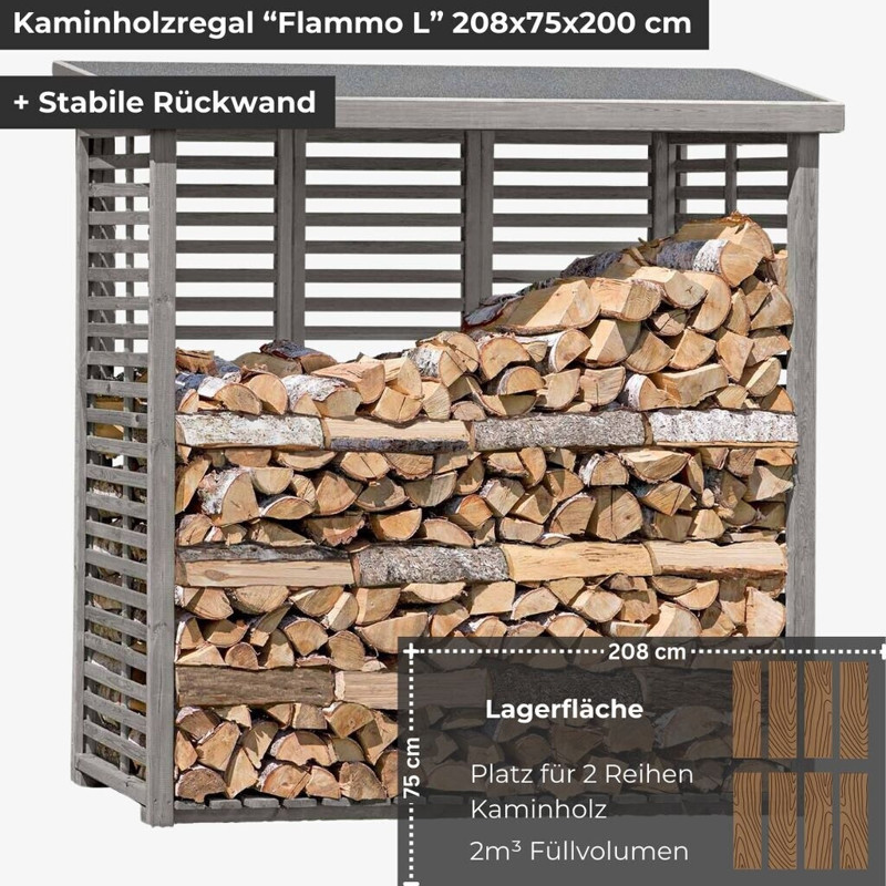 Der ediGarden Flammo L ist ein hochwertiger Holzunterstand aus robustem Kiefernholz und wurde speziell für den Außeneinsatz konzipiert. Mit einer Größe von 208 x 75 x 200 cm bietet er ausreichend Platz für Ihr Kaminholz und schützt es zuverlässig vor Witterungseinflüssen.